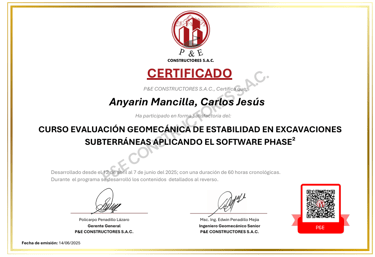 CURSO: EVALUACIÓN GEOMECANICA DE ESTABILIDAD DE EXCAVACIONES SUBTERRANEAS MEDIANTE EL USO DE SOFTWARE PHASE2 VERSION 8.0 (CASOS PRACTICOS)