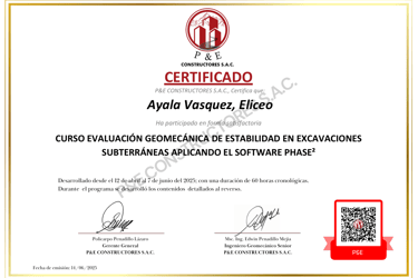 CURSO: EVALUACIÓN GEOMECANICA DE ESTABILIDAD DE EXCAVACIONES SUBTERRANEAS MEDIANTE EL USO DE SOFTWARE PHASE2 VERSION 8.0 (CASOS PRACTICOS)