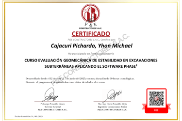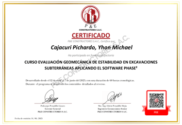 CURSO: EVALUACIÓN GEOMECANICA DE ESTABILIDAD DE EXCAVACIONES SUBTERRANEAS MEDIANTE EL USO DE SOFTWARE PHASE2 VERSION 8.0 (CASOS PRACTICOS)