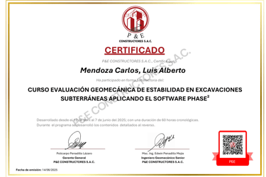CURSO: EVALUACIÓN GEOMECANICA DE ESTABILIDAD DE EXCAVACIONES SUBTERRANEAS MEDIANTE EL USO DE SOFTWARE PHASE2 VERSION 8.0 (CASOS PRACTICOS)