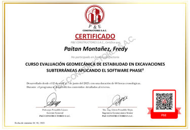 CURSO: EVALUACIÓN GEOMECANICA DE ESTABILIDAD DE EXCAVACIONES SUBTERRANEAS MEDIANTE EL USO DE SOFTWARE PHASE2 VERSION 8.0 (CASOS PRACTICOS)