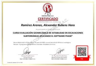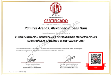 CURSO: EVALUACIÓN GEOMECANICA DE ESTABILIDAD DE EXCAVACIONES SUBTERRANEAS MEDIANTE EL USO DE SOFTWARE PHASE2 VERSION 8.0 (CASOS PRACTICOS)
